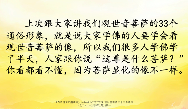 【音 • 图 • 自我测试 】Baihuafofa20170124 观世音菩萨三十三身法相 (之二)|白话佛法共修